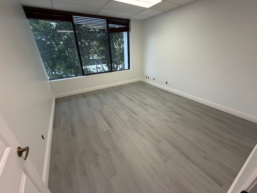This Lake Worth office space for lease features a full build-out in excellent condition, providing a clean, modern, and move-in-ready workspace. The flexible layout allows for both private offices and collaborative work areas, making it adaptable to a variety of professional and medical needs.